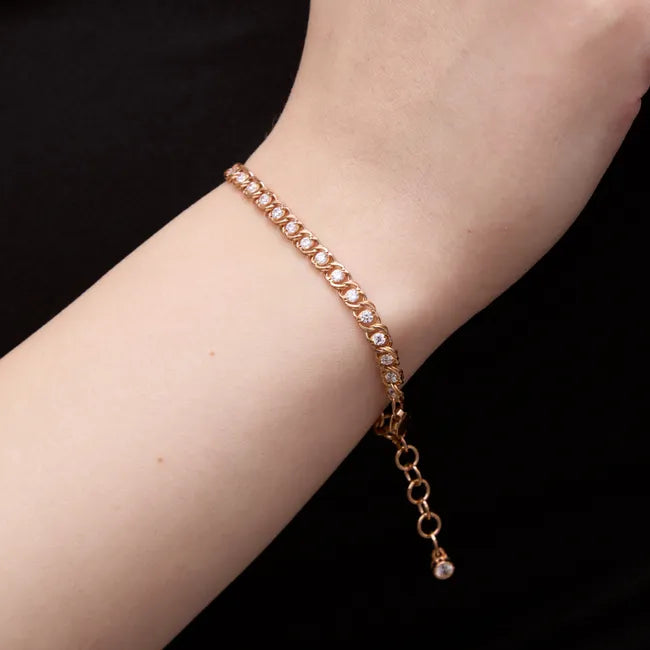 Its adjustable extension chain ensures a comfortable and secure fit, making it suitable for different wrist sizes. A perfect balance of luxury and practicality, this bracelet is ideal for women who appreciate classic chain jewelry with a modern, glamorous touch.