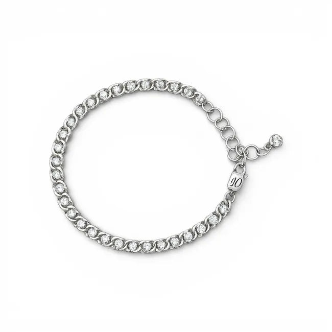 The dense, rounded links create a smooth and comfortable fit on the wrist, while the stones add elegant brilliance without being excessive. An adjustable extension chain ensures a perfect fit, and a small zirconia accent at the end adds a delicate finishing touch.