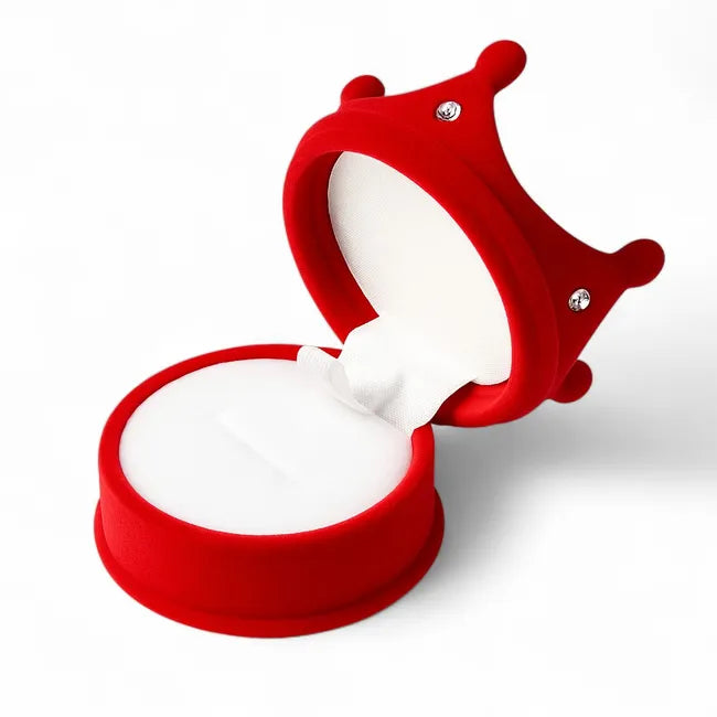 The round cushioned interior securely holds a ring or small jewelry piece, while the crown silhouette makes it perfect for special surprises and romantic proposals.